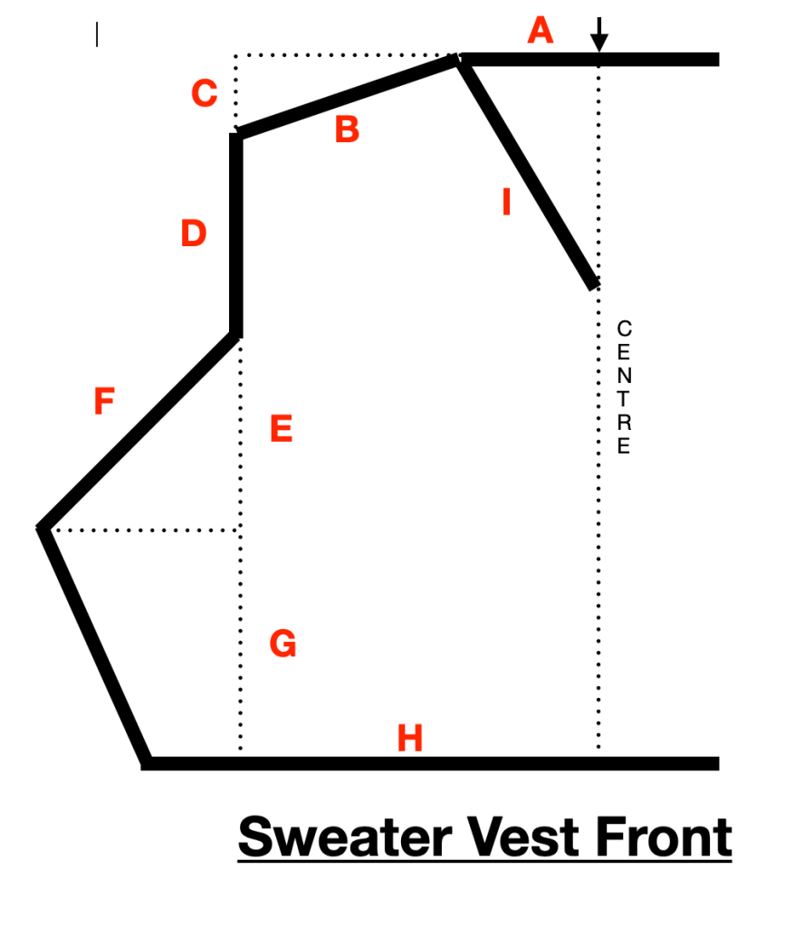 G – This can be the same as the measurement for the front but I decided to make the back longer on my sweater vest.