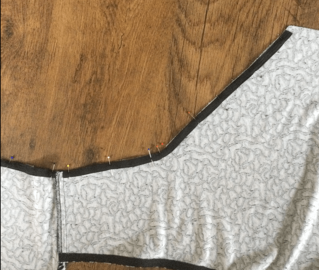 Neck has been interfaced and stay stitched and snipped